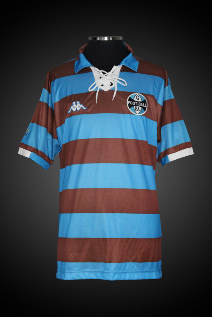 Uma camisa de jogo único! Essa camisa foi utilizada contra o Botafogo, em um amistoso para comemorar o centenário de ambas as equipes, no dia 04/09/2004. A equipe gaúcha alcançara a marca no ano anterior, enquanto os cariocas alcançavam-na naquele ano. Esta camisa remete à primeira camisa do tricolor, com a coloração havana. O alvinegro também utilizou um uniforme com inspirações históricas. A partida terminou em 4 x 1 para os cariocas, em um ano que terminaria de maneira trágica para o Grêmio, após escândalos de gestão nos anos anteriores.